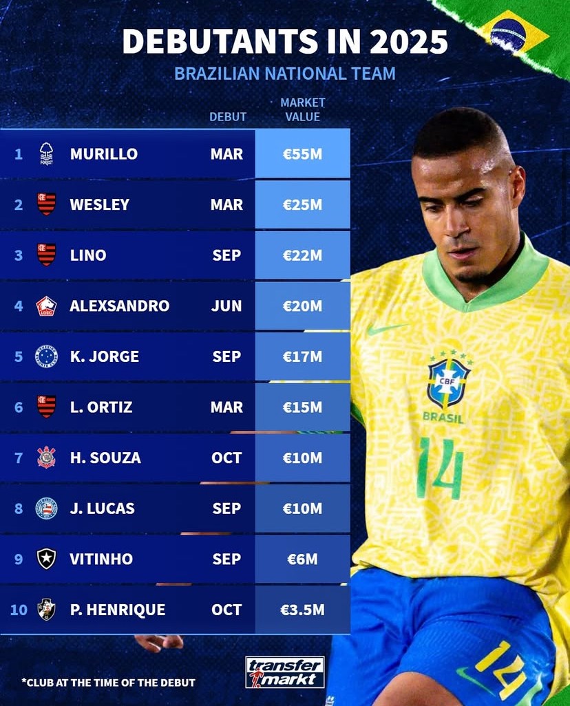 德转列今年完成巴西队首秀的球员:穆里略、利马、利诺在列